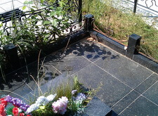 Могилу помыли. Особенно заметные потрескавшиеся швы замазали. Зону цветника почистили, лишние цветы унесли, еще хорошие помыли. Могила готова к посещению.
